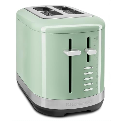 The KitchenAid 2 Slice Automatic Toaster with Extra Wide Slots in a vibrant Pistachio color is a versatile and stylish addition to any kitchen. Designed for those who appreciate both style and functionality, this toaster features a wide range of toasting shades, ensuring your toast is prepared exactly to your liking every time. Its extra-wide slots allow you to toast a variety of bread types, accommodating everything from thick artisanal loaves to bagels and English muffins. With four additional functions – Bagel, Defrost, Reheat, and Little Longer – this toaster provides you with the flexibility to prepare your breakfast just the way you want. The manual high lift lever makes it easy to access your bread, no matter the size, while ensuring that you can toast with precision.