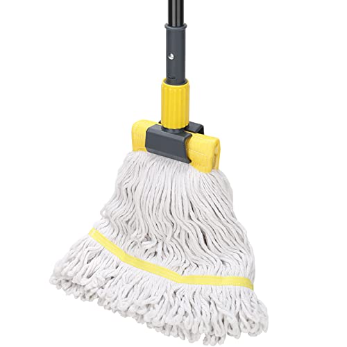 The Commercial Mop Heavy Duty Industrial Cotton Mop features a robust design that caters to both professional and home cleaning needs. With a 59-inch long handle and large-sized cotton mop head, it is ideal for tackling dirt and moisture on various surfaces, from wooden floors to tile and marble. The premium cotton material ensures high absorbency, while the upgraded looped-end clamp provides a secure hold on the mop head, enhancing durability. This mop is designed for ease of use, with its reusable and machine-washable mop head, making it a cost-effective solution for maintaining cleanliness in garages, offices, and workshops.